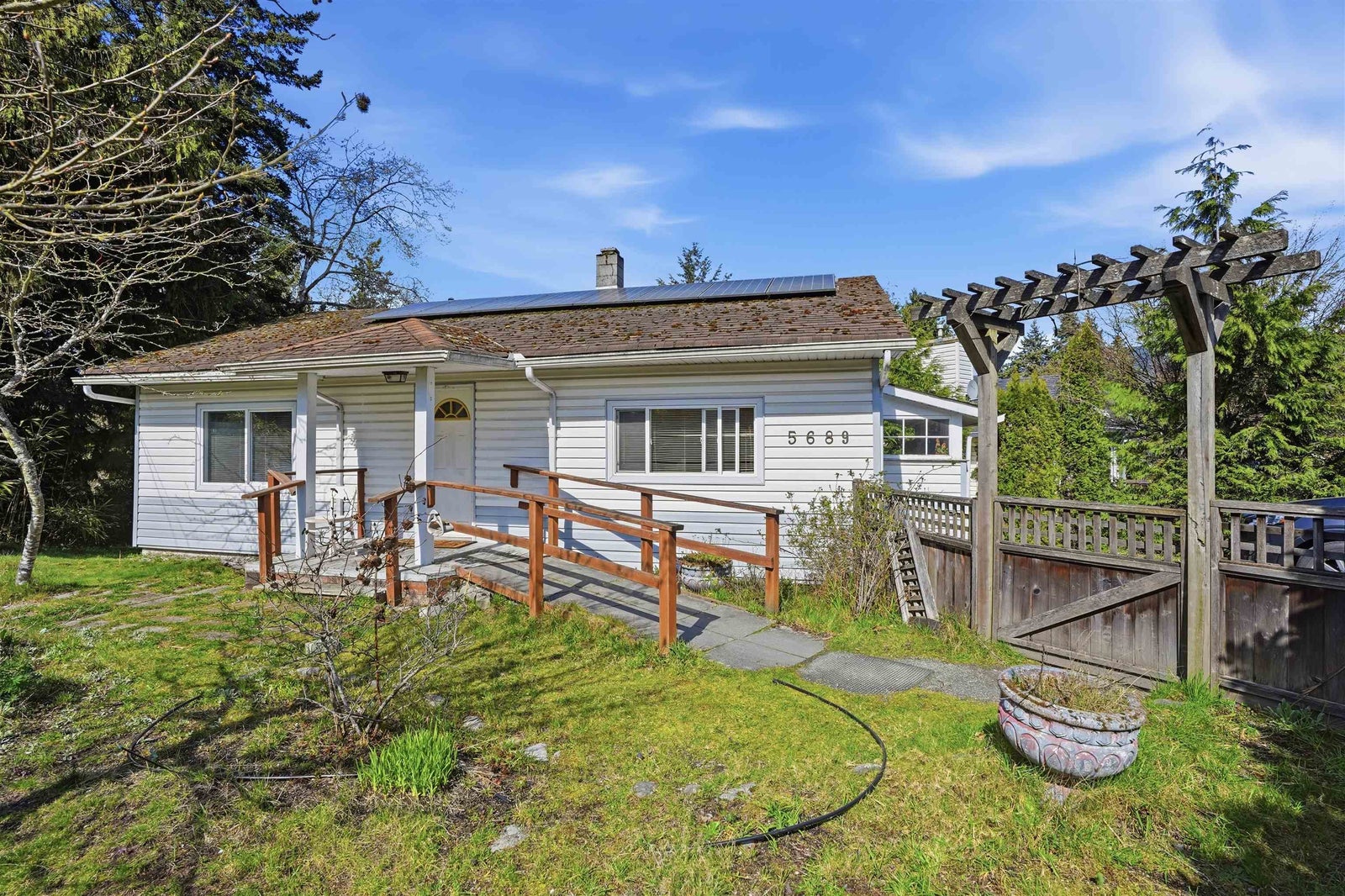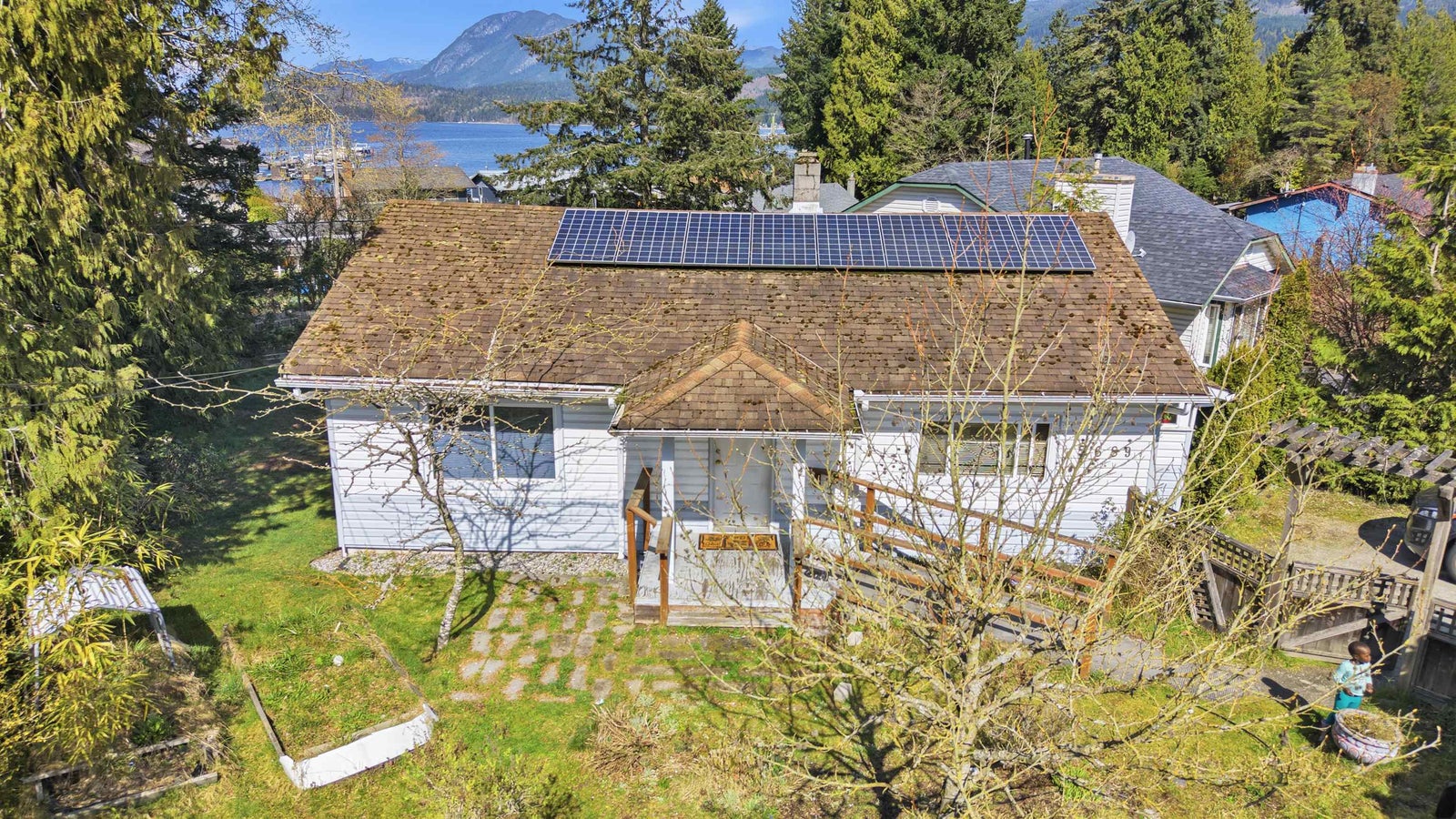 Charming, centrally located home offers the convenience of in-town living with a surprisingly private setting. This home is ready for your ideas and updates, presenting a great opportunity to build equity. The main level offers easy entry with a spacious country kitchen, cozy living room, and 2 bedrooms + 2 bathrooms. The full-height walk-out basement is mostly finished and offers excellent suite potential. Ideal as a mortgage helper or extended living space with 1 bedroom. Small inlet views can be enjoyed from the back, with lane access to the yard adding further convenience. Situated on R4 – Urban Infill zoning, this property offers exciting future potential with options for multi-unit housing such as duplex, triplex, fourplex, or cottage-style development.